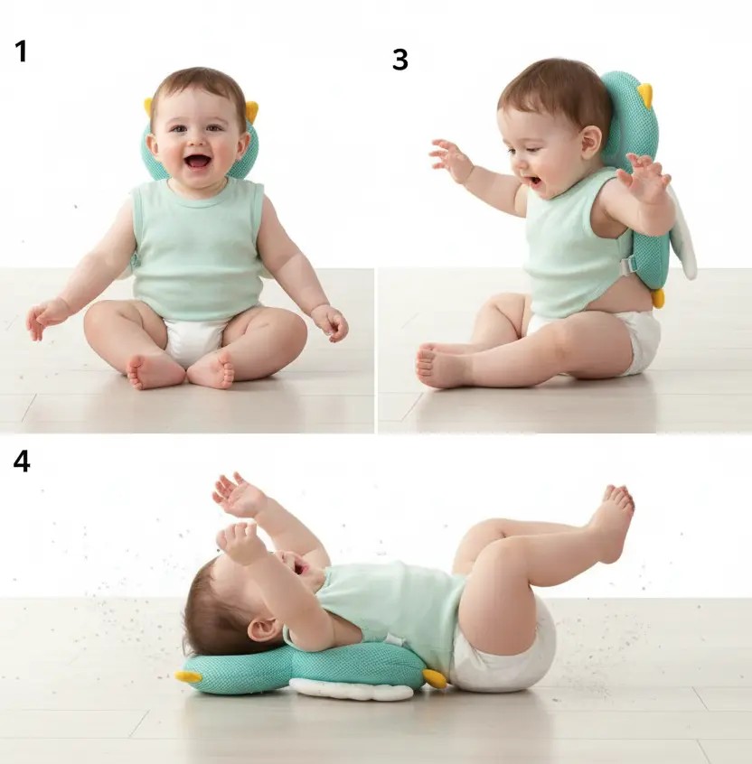 Durante o engatinhar e os primeiros passos, qualquer desequilíbrio pode causar quedas. A babyGuard age como uma almofada protetora que absorve o impacto antes que ele chegue à cabeça do seu bebê, reduzindo drasticamente o risco de lesões.